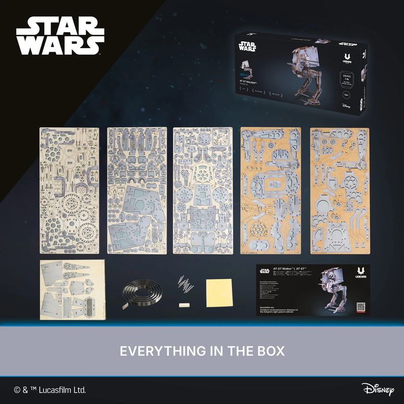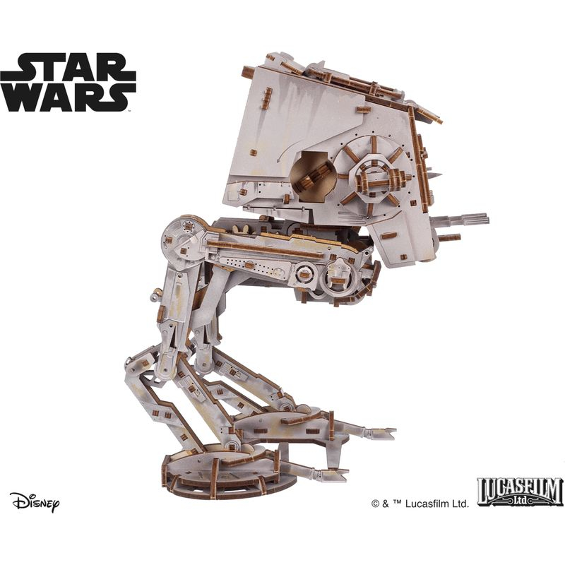 AT-ST Walker™ je poháněný pružinovým mechanismem a pohybuje se pomalu a plynule, velmi podobně svému filmovému protějšku, na vzdálenost 60-80 cm. Hlava se při pohybu otáčí ze strany na stranu, aby vytvořila široké palebné linie. Podbradní blasterová děla a bočně umístěné lehké blastery a granátomet lze manuálně otáčet nahoru a dolů, okénka v kokpitu a horní poklop se otevírají ručně. Model je vyroben z barevné překližky s detailním potiskem na povrchu pro realistický vzhled. Obsahuje také kovové součásti pro vyšší odolnost a stabilitu. Natočte AT-ST Walker™ zasunutím skrytého klíče do pravé strany „hlavy“ a otočením proti směru hodinových ručiček.
