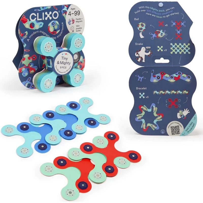 CLIXO je flexibilní, velmi lehká, zcela inovativní magnetická stavebnice ze syntetického papíru, vyráběná v různých barevných kombinacích, která je inspirována origami. Tato stavebnice je založena na principu spojování různých tvarů a dílků přichycením červených a modrých magnetů, které jsou zabudovanými v důmyslném pouzdře, jež umožňuje rotační pohyb o 360° a zároveň fixuje ve 24 polohách. Stavebnice je navržena tak, aby rozvíjela dětskou kreativitu, prostorové vnímání a jemné motorické dovednosti. Jednotlivé sady jsou vynikající pomůcky pro výuku STEAM (Science, Technology, Engineering, Arts, and Mathematics) a to jak doma, tak i ve třídě. Jedná se také o skvělou Montessori hračku. Nedají se ani roztrhnout, jen přestřihnout nůžkami. Každý díl je vyroben z patentovaného, recyklovatelného syntetického papíru (nevadí mu ani voda), magnetů a polymerů bezpečných pro děti, které neobsahují BPA, ftaláty a jsou netoxické. Díky recyklovatelným materiálům a odolné konstrukci jsou pro děti zcela bezpečné. Výrobky CLIXO jsou vyrobeny s důrazem na každý i ten nejmenší detail. Díky estetickému balení jsou jednotlivé CLIXO sady ideální i jako dárek. Velmi vhodné jsou také do mateřských škol a vzdělávacích zařízení při kreativních aktivitách s dětmi.