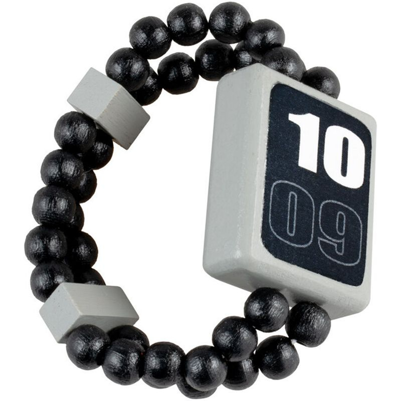 Dřevěné hodinky s namalovaným ciferníkem a na druhé straně s digitálkami. Dětská bižuterie z dřevěných perlí navlečených na gumičce. Průměr náramku je cca 70mm - lze natahovat, tudíž vleze na jakoukoliv ruku.