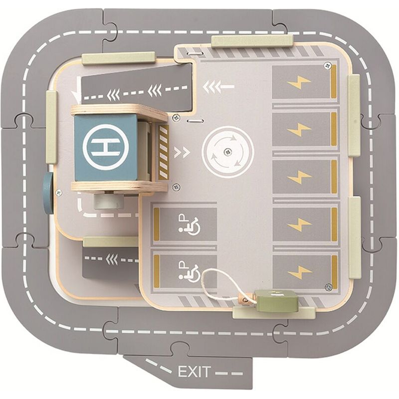 Všem automobilovým nadšencům se rozzáří oči, až uvidí garáž se silnicí, výtahem a heliportem. Umístěte dopravní značky, připravte svá autíčka a hra může začít. Umyjte svůj vůz v auto-myčce. Natankujte pohonné hmoty u stojanu v přízemí. Máte elektro auto? Žádný problém, vyvezte svůj vůz pomocí výtahu a připojte ho k nabíječce ve druhém patře. Baterie je plná? Tak můžete vyrazit. Stala se nehoda? Z heliportu na střeše už startuje vrtulník. Tato edukativní hračka motivuje děti ke kreativní a představivé hře. Rozvíjí koordinaci ruka-oko, jemnou motoriku a zručnost. Garáž s parkovacími plochami na třech úrovních obsahuje také silnici, 4 autíčka, helikoptéru a 3 dopravní značky.
