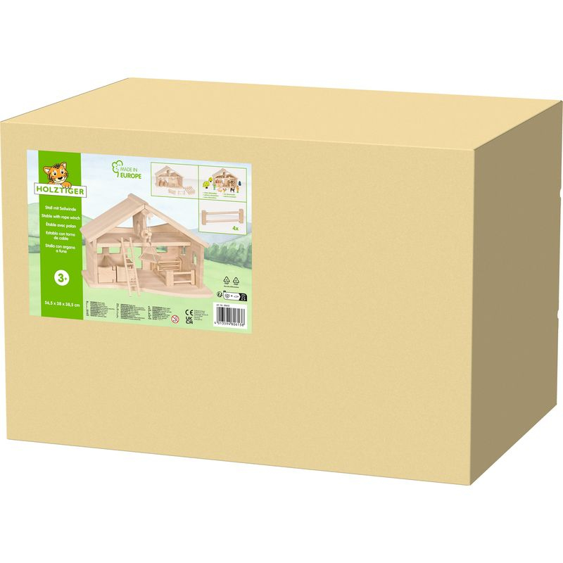 Dřevěný domeček pro zvířátka Holztiger - Stáj s lanovým navijákem.