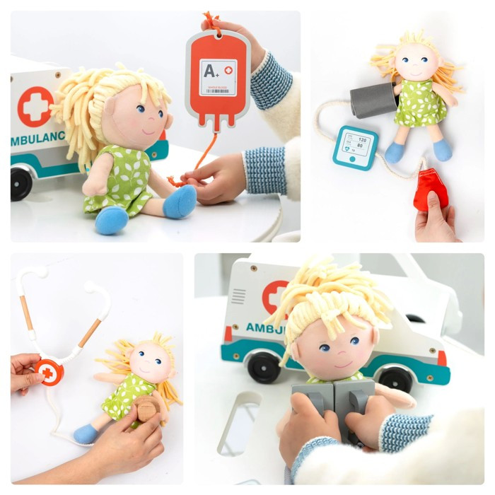 U dětí oblíbená hra na doktora či sestřičku. Děti mohou ošetřovat například své plyšové mazlíčky či paneku. Sada pro malého ošetřovatele obsahuje kromě ékařského příslušenství, dřevěnou sanitku a panenku. Rolové hry jsou velmi důležité hry pro rozvoj komunikace a sociálních interakcí.