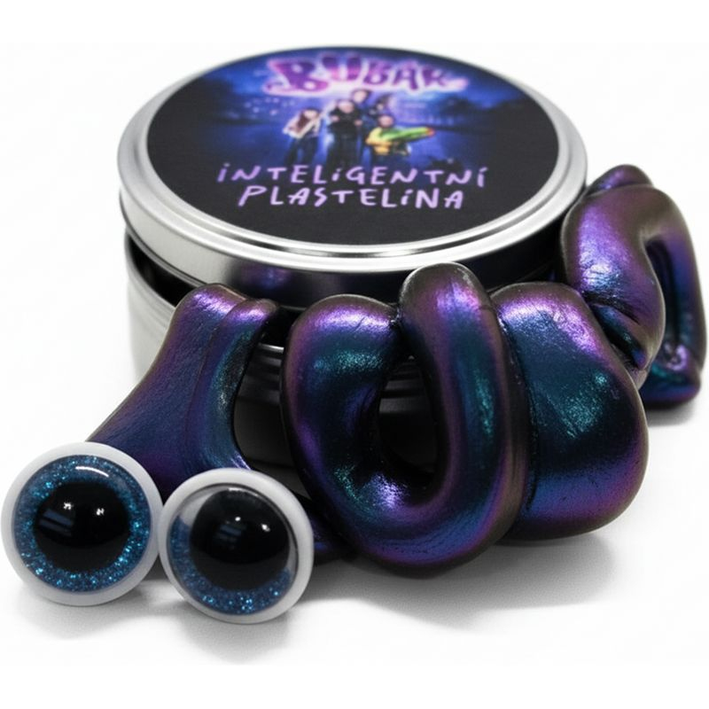 Bubák Skarab - Inteligentní plastelína kde se barvy hýbou a mění přímo před Vašima očima. Objev kouzlo tajemného bubáka Skaraba! Jeho kovově fialová a modrozelená kůže se leskne jako drahokam z jiného světa. Skarab ožívá pod tvými prsty – natahuje se, skáče, trhá, i mění tvar, jakmile mu dáš prostor k fantazii. Každá plechovka obsahuje poctivých 40g bubákové hmoty a pár hrůzných očí.