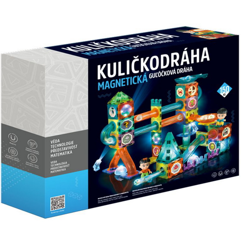 Magnetická kuličkodráha se 150 díly, nabízí snadné spojování dílků, rychlé kuličky a nekonečnou zábavu pro malé stavitele.