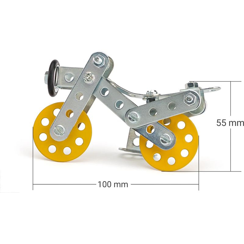 Díky své robustní konstrukci, kovovým dílům a reálnému spojování pomocí šroubků a matek učí děti nejen trpělivosti, ale i základům techniky a logického myšlení.