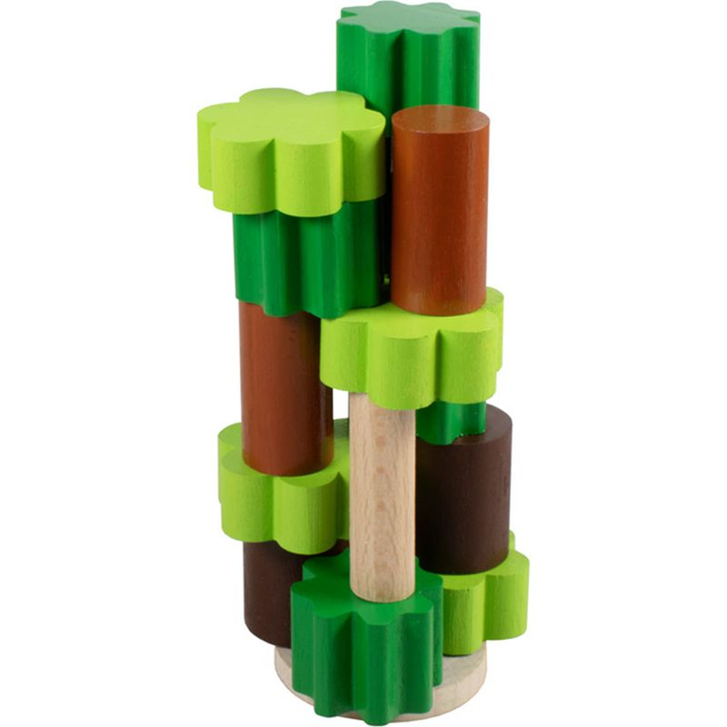 Stavění dřevěných dílku na sebe, pozor ať strom nespadne!