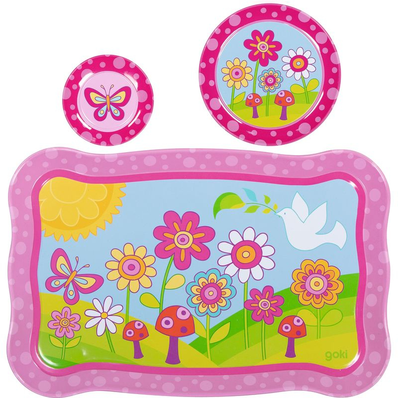 Nádobí dětské - Čajový set, Funky Flowers plechový (Goki)