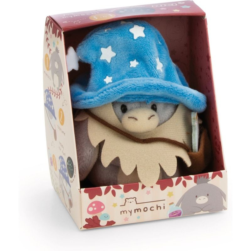 Roztomilý šedý oslík Earl je měkoučký plyšový kamarád, vyroben z hebkého plyše Nici. Osel Earl z edice Mymochi Fairy je oblečen do čarodějnického kostýmu s modrým hvězdným kloboukem, který svítí ve tmě a přichází se svým legračním malým kamarádem Moodi, kouzelným lektvarem. Rozměry hračky: 8x8x8cm.