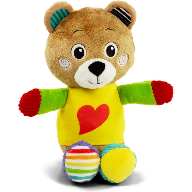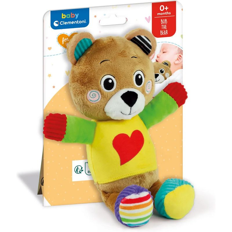 Hezký a měkký plyšový medvídek vhodný pro malé děti na hraní v atmosféře plné něhy. Plyšová hračka je vyrobena z různých materiálů napomáhajících multismyslové stimulaci a rozvoji hmatového vnímání v prvních fázích života. Tato plyšová hračka je dodávána s měkkou přikrývkou navrženou tak, aby absorbovala matčinu vůni a uklidnila dítě. Milý medvídek se rychle stane nerozlučným kamarádem miminek v prvních měsících života. Lze prát v pračce.