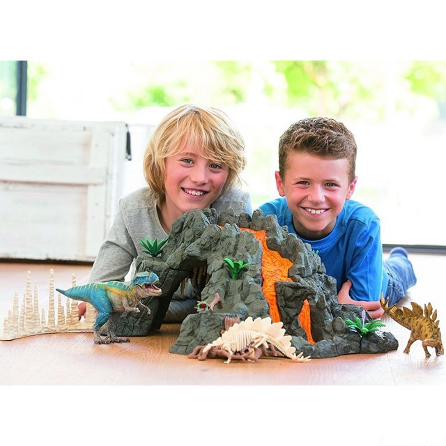 Cenově výhodný set dinosaurů a velké jeskyně se sopkou pro hraní dětí na pravěk. Jeskyně vytváří mnoho příběhů a děti si zažijí své dobrodružství.