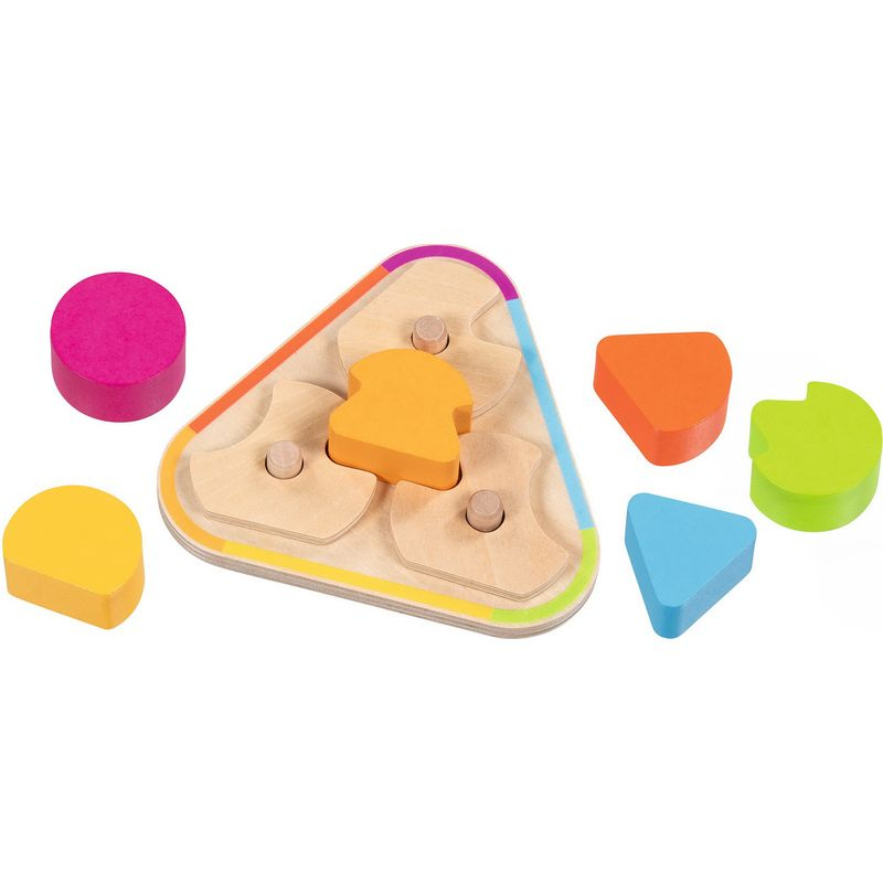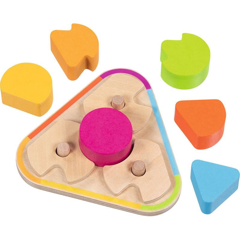 Otočte disky tak, aby se jejich výřezy dokonale zarovnaly a vytvořily tak prostor pro správný tvar uprostřed. Hlavolam pro malé hlavičky. Rozvíjí zrak, dětskou motoriku, vnímání barev a soustředěnost.