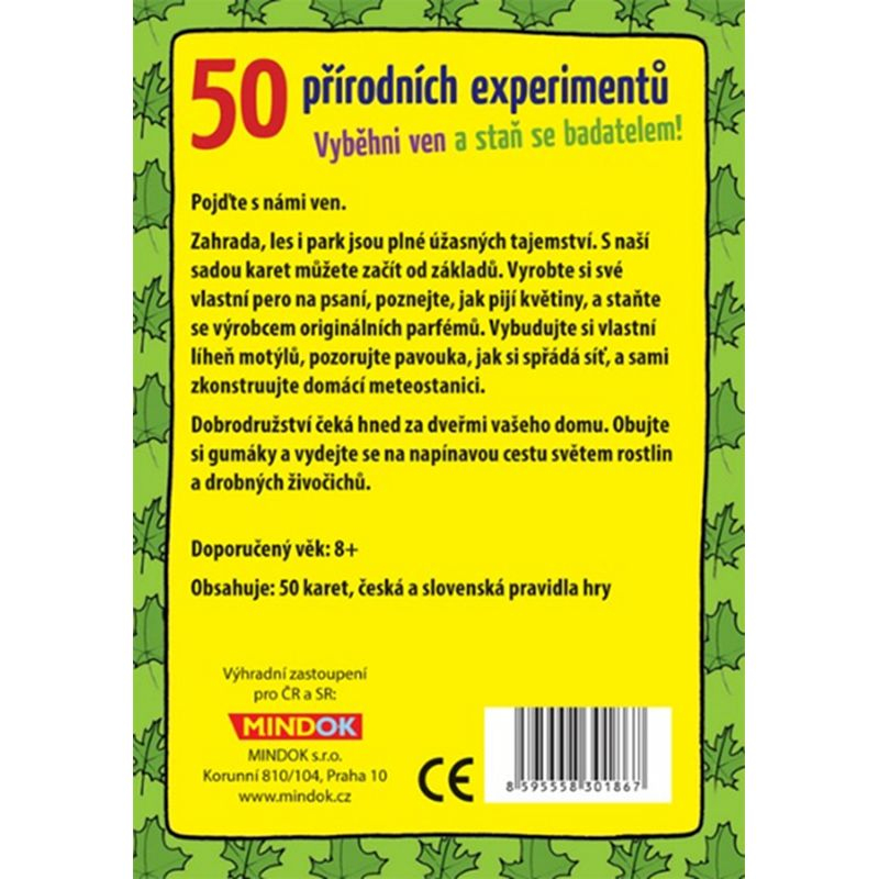 S naší sadou karet můžete začít od základů. Vyrobte si své vlastní pero na psaní, poznejte, jak pijí květiny, a staňte se výrobcem originálních parfémů. Vybudujte si vlastní líheň motýlů, pozorujte pavouka, jak si spřádá síť, a sami zkonstruujte domácí meteostanici. Dobrodružství čeká hned za dveřmi vašeho domu. Obujte si gumáky a vydejte se na napínavou cestu světem rostlin a drobných živočichů.