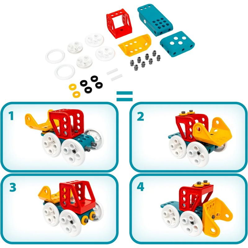 Sestavte si své první autíčko na dálkové ovládání! Po sestavení je vůz díky kvalitnímu zpracování zcela odolný vůči nárazům a díky 4směrnému řízení zcela unikátní. Stačí postavit vozidlo kolem motorové jednotky, nasadit kola a vzít do ruky ovladač. Rádiový rozsah 2,4 GHz. Dosah ovládání je až 15 m. Jazykové mutace: CZ, SK, EN. Balení obsahuje 27 dílů.