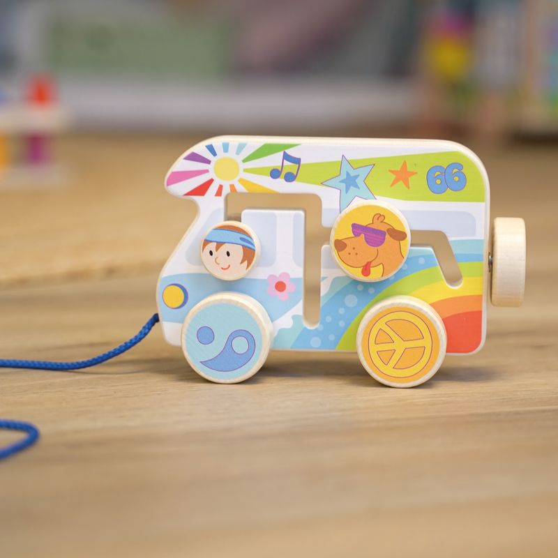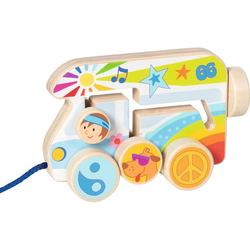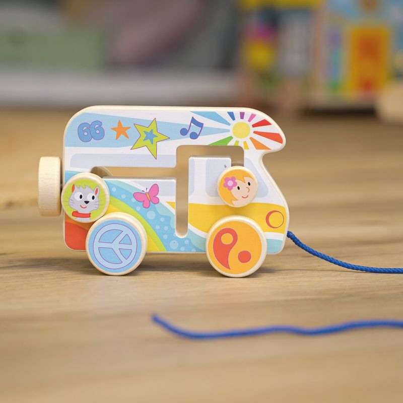 Dřevěné kempovací autíčko na šňůrce je okamžitě připraveno k hraní, součástí je i mini labyrint. Tahací hračky jsou u malých dětí velmi oblíbené. Jakmile se postaví na nožky a začnou objevovat svoje okolí, je přeci prima mít s sebou nějakého kamaráda, třeba řidiče s obytným vozem. Vyrobeno ze dřeva. Vhodné od 1 roku.