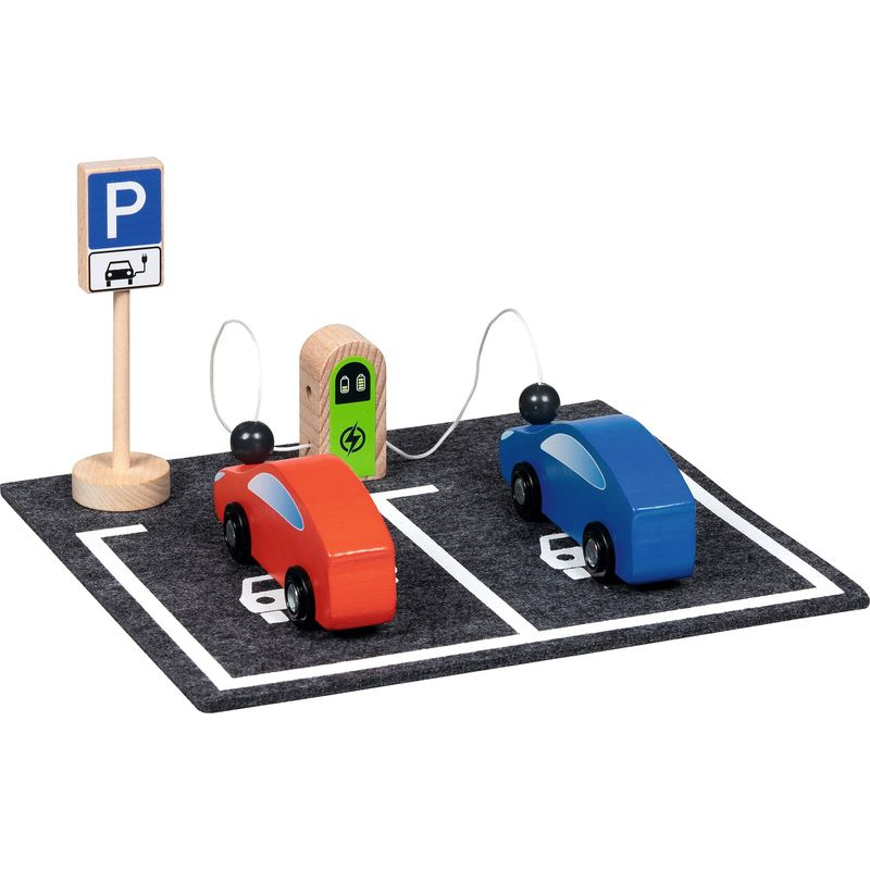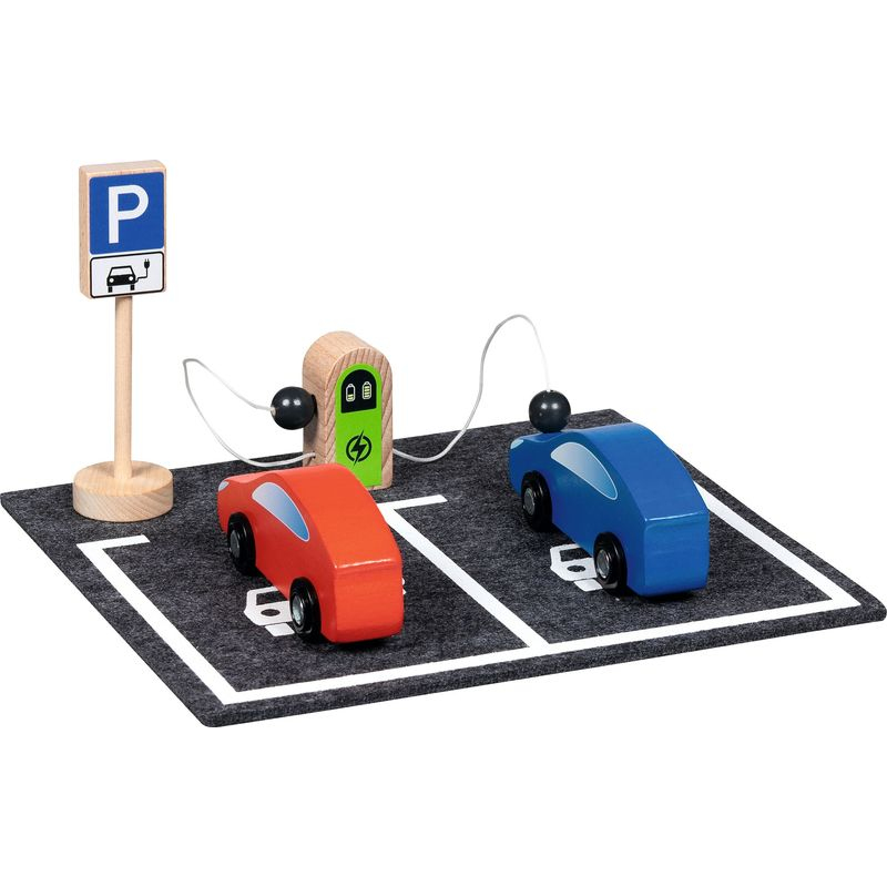Ze dřeva a filce je vyrobena tato dobíjecí stanice, která nesmí chybět u žádné autodráhy. Velikost autíčka je 11x3,1x4,5 cm. Vhodné od 3 let.