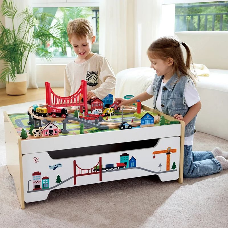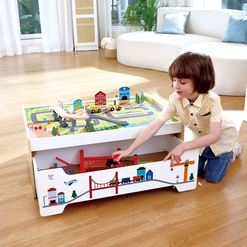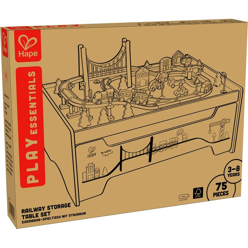 Vláčkodráha Hape - S hracím stolem a úložným prostorem, 75 dílů