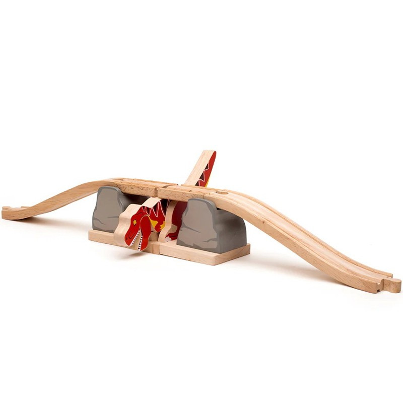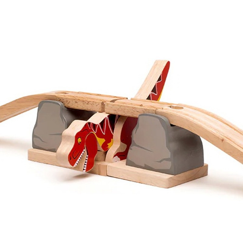 Tento dinosauří most je zábavný a unikátní v každé dřevěné vláčkodráze. Toto prehistorické příslušenství bude bavit mladé nadšence do železnice celé hodiny. Kreativní vyprávění je přirozeně inspirováno, když hladový dinosaurus prorazí most, což způsobí, že se trať rozbije a dokonce pošle vlaky létat vzduchem mimo trať! Podporuje kreativní a nápaditou hru.