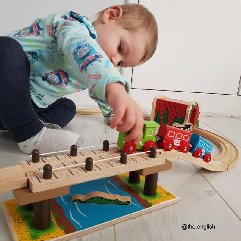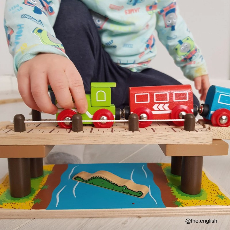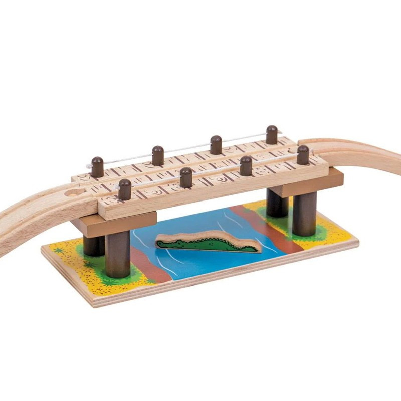 Tento most nad řekou je zábavný a unikátní v každé dřevěné vláčkodráze. Malí průzkumníci prozkoumají zázraky Safari, přiblíží se k mostu a dívají se na krokodýla, jak se pomalu supí. Děti vždy milují řízení vlaků a přidávání dalších nových kousků, podobné tomuto mostu, který zažehne jiskru v dětské tvořivosti.
