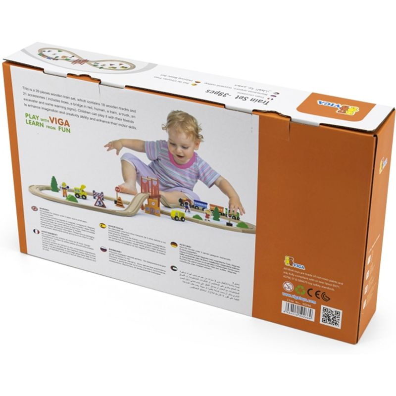 Oblíbená vláčkodráha osmička. Sada je vhodná jako první dřevěná vláčkodráha, ke které lze dokupovat další koleje a příslušenství z naší nabídky. Balení obsahuje celkem 39 kusů. Balení obsahuje například koleje, most, vláček, auta a další doplňky. Rozměry složené vláčkodráhy je cca 104 x 44,5 x 14,5cm.