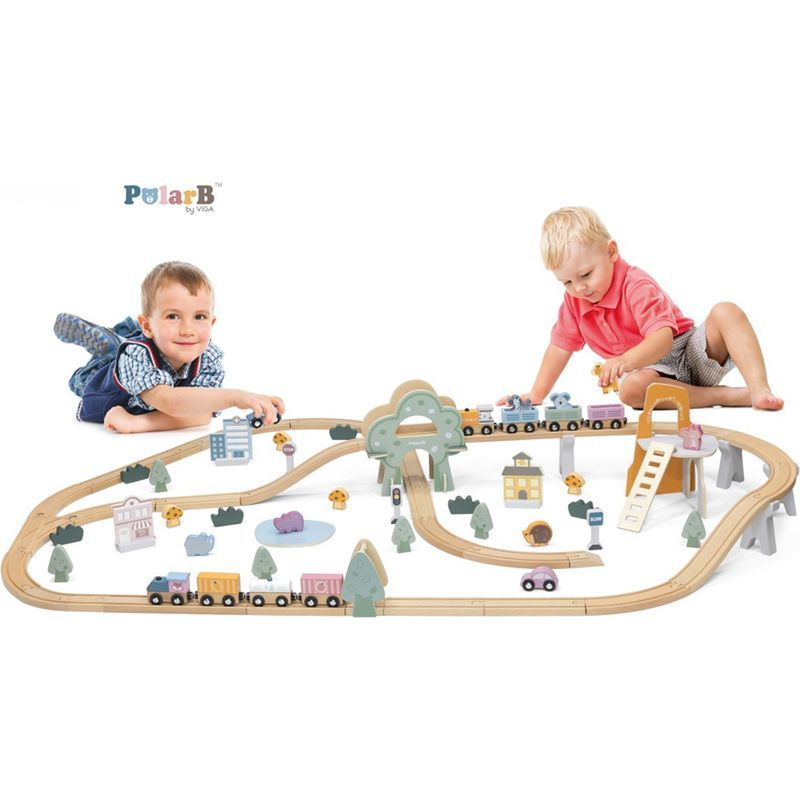 Vláčkodráha Viga - PolarB pastelová se zvířátky, 90 dílů