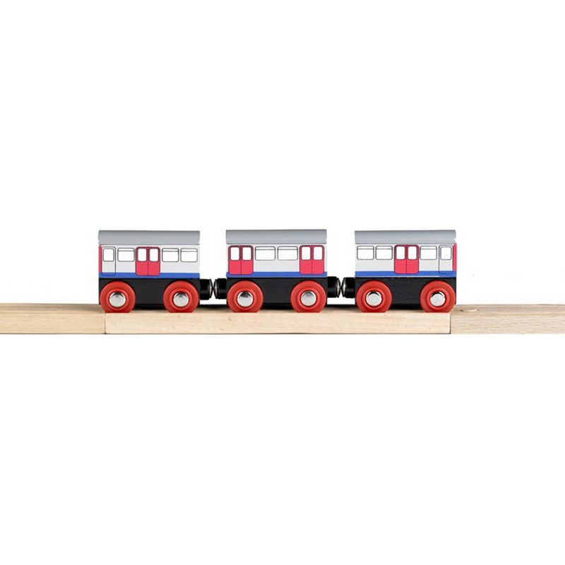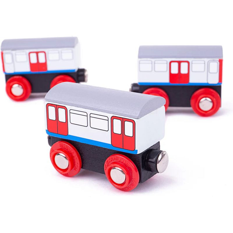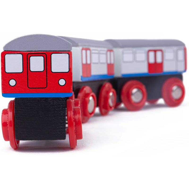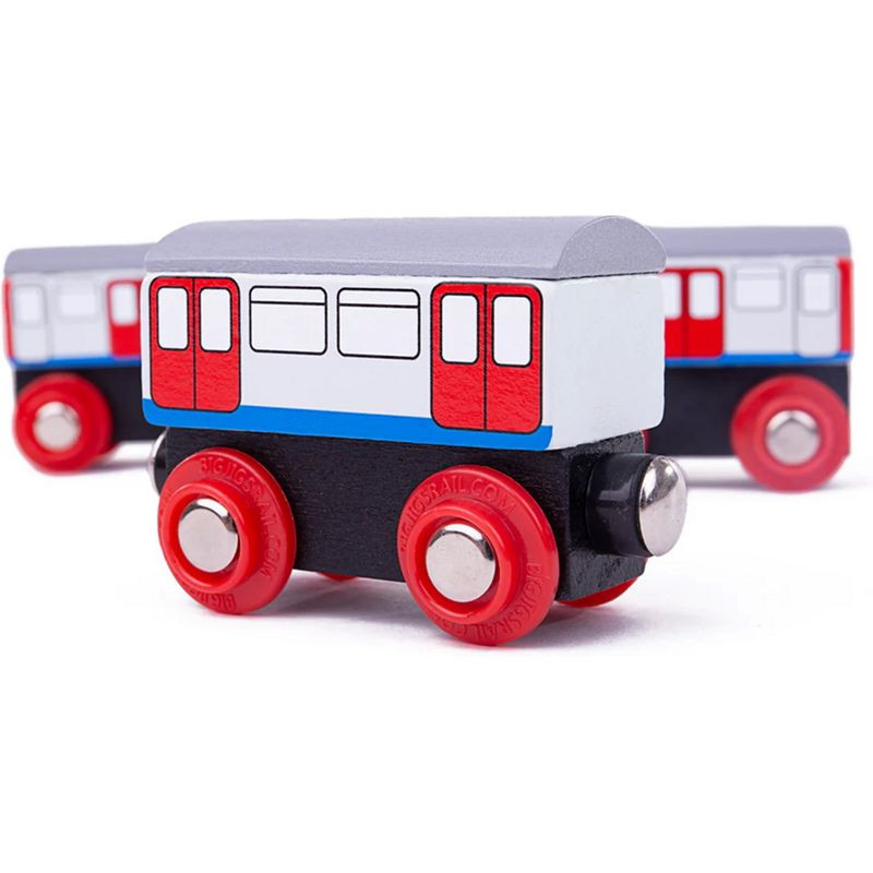 Městské metro převáží spoustu lidí najednou, díky své rychlosti. Vozí každé ráno všechny do práce a večer zase domů. Jeho vybavení nabízí cestujícím opravdový komfort cestování. Vagóny metra jsou dřevěnou replikou ikonické londýnské soupravy metra, která převáží nejen turisty, ale taky Londýňany. Pěkný doplněk jakéhokoliv setu dřevěných vláčků. Balení obsahuje 3 vagóny metra a 2 kusy dřevěných kolejí. Podporuje děti v kreativním a představivém hraní na role.