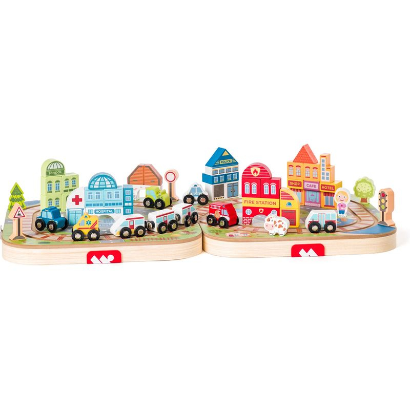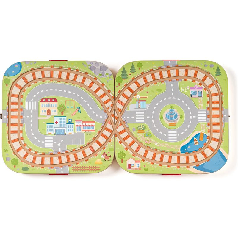 Dřevěný kufřík s vláčkodráhou Město a velkým příslušenstvím.