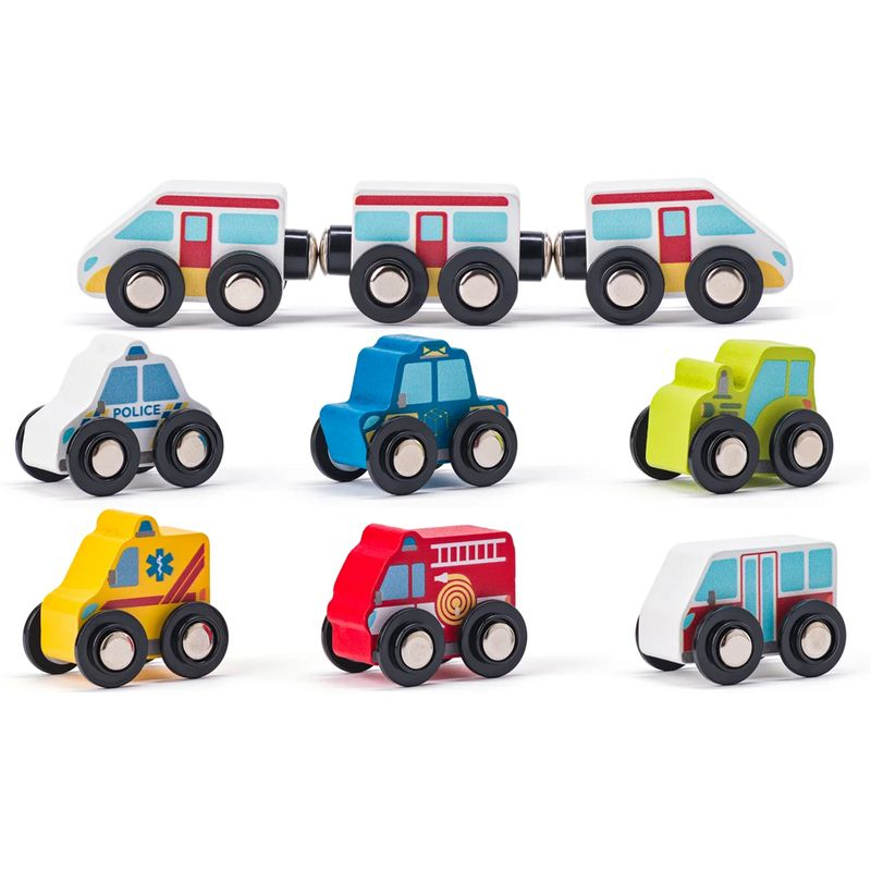 Dráhu lze postavit pokaždé jinak a možno kombinovat i s jinými stavebnicemi na trhu. Otevřete kouzelný svět železnic v dřevěném kufříku! Po jeho rozložení vznikne na obou stranách jeho víka krajina s dráhou ve tvaru osmičky s vyfrézovanými kolejemi. Dřevěný vláček, dřevěná autíčka a kostky pro stavbu domečků tvoří dokonalou herní sadu v jedinečném designu od české výtvarnice.