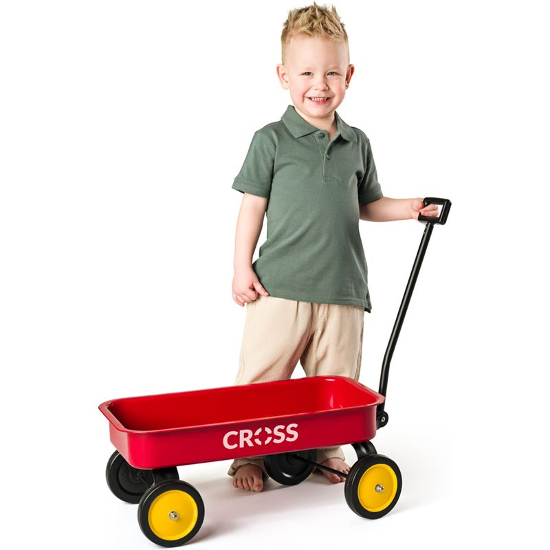 Kovový vozík Cross je skvělá hračka pro malé dobrodruhy, kteří rádi převážejí hračky, písek nebo poklady ze zahrady. Díky robustní konstrukci z kovu je vozík odolný a připravený na každodenní dětská dobrodružství doma i venku. Vozík má pevné kovové tělo, které zajišťuje dlouhou životnost a stabilitu při jízdě. Kovová vodicí tyč s plastovým madlem umožňuje pohodlné tažení i snadné ovládání. Plastová kolečka jsou lehká a zároveň dostatečně odolná pro jízdu po různých površích. Přední kolečka jsou navíc otočná, takže vozík lze snadno řídit a manévrovat s ním při hře.