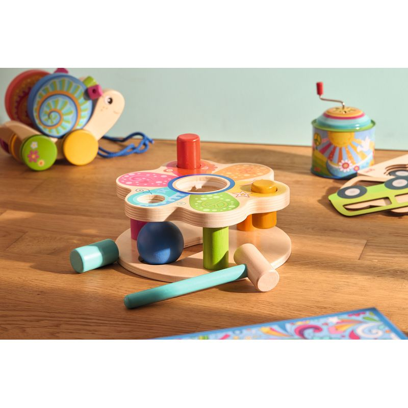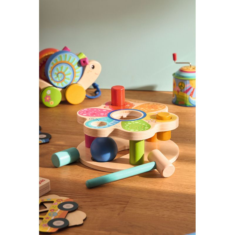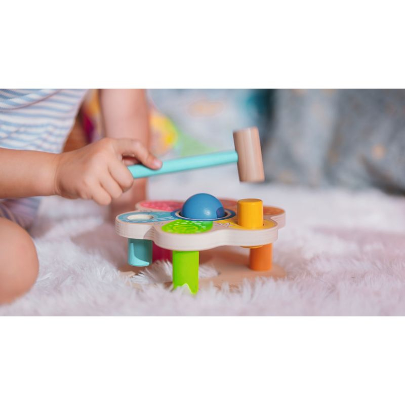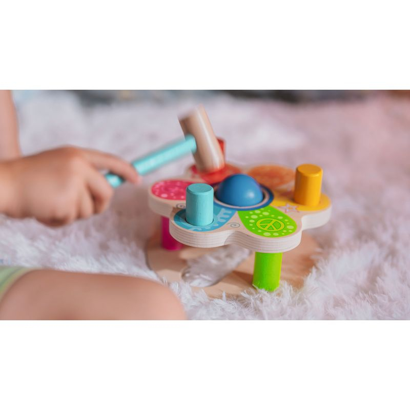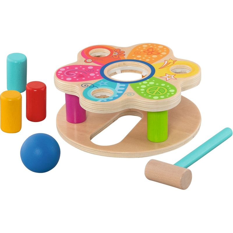 Dřevěná zatloukačka květina je hračka určená pro vývoj manuálních schopností dítěte. Bum bum. A že budeš potřebovat pořádnou sílu, aby se ti podařilo zatlouci kuličku a kolíčky do správných otvorů! Jejda, není to úplně jednoduché, se kladívkem správně trefit. A poznáš, která barvička patří ke které? Jedna z prvních akčních hraček pro malé děti je naučí trpělivosti, vytrvalosti, procvičí motorické dovednosti a navíc je úžasně zábavná. Kytička má krásný design se spoustou barviček a obrázků, které mohou děti objevovat. Vyrobeno ze dřeva. Vhodné od 1 roku.